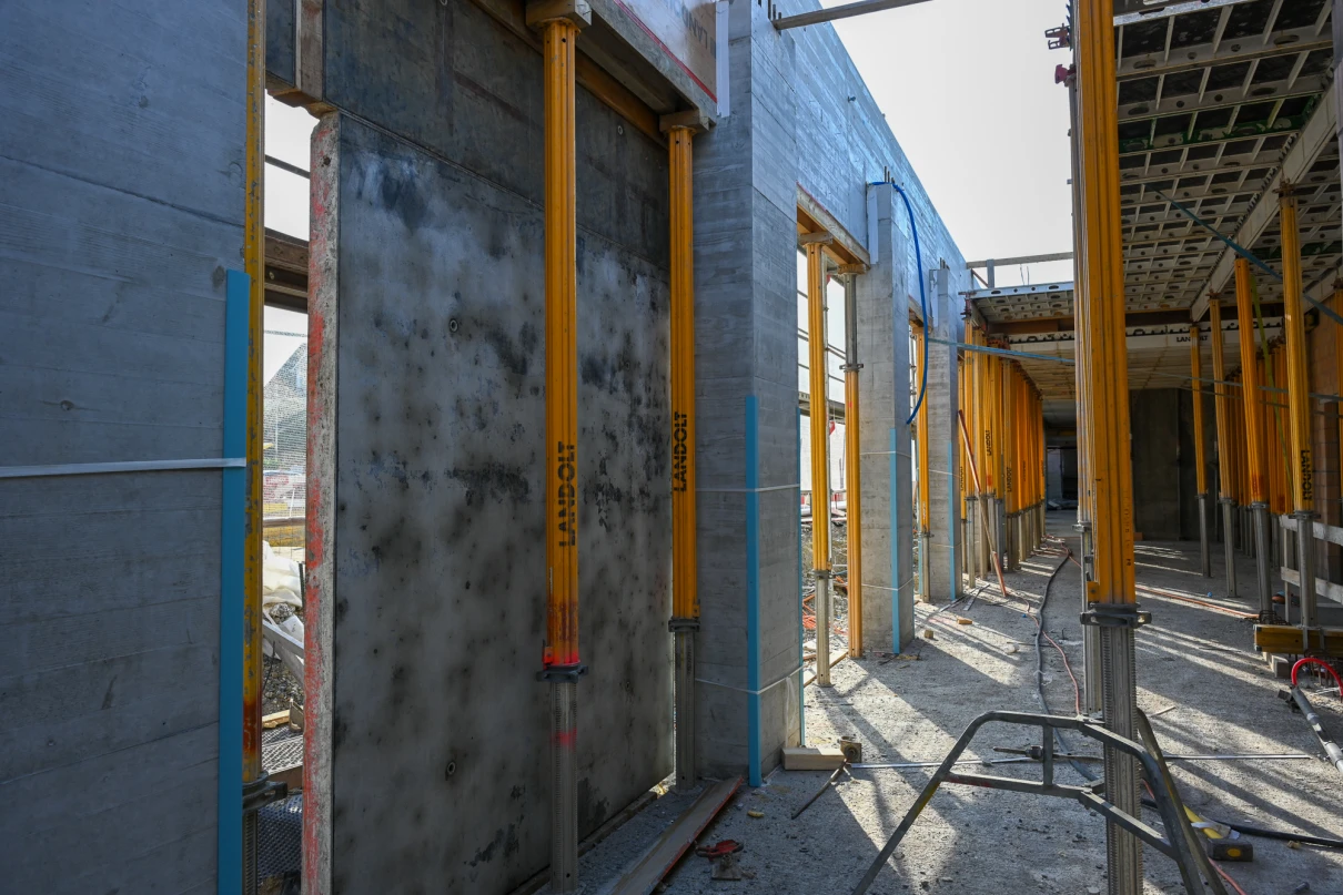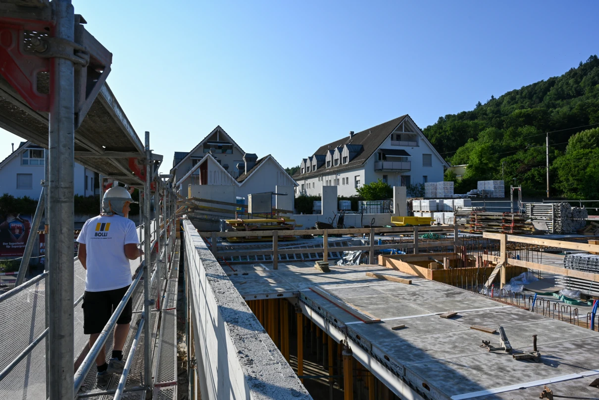 Über dem Erdgeschoss entstehen auf drei Etagen insgesamt 16 moderne Mietwohnungen. Im Erdgeschoss sind attraktive Verkaufsflächen für Migros und Denner vorgesehen. Der Neubau wird in einer Kombination aus Stahlbeton und Mauerwerk realisiert, wobei die Erdgeschossfassade in hochwertigem Sichtbeton ausgeführt wird und dem Gebäude einen markanten Charakter verleiht.