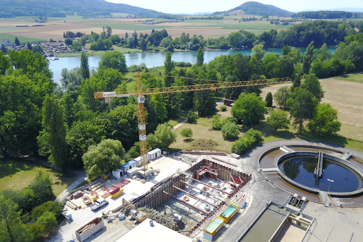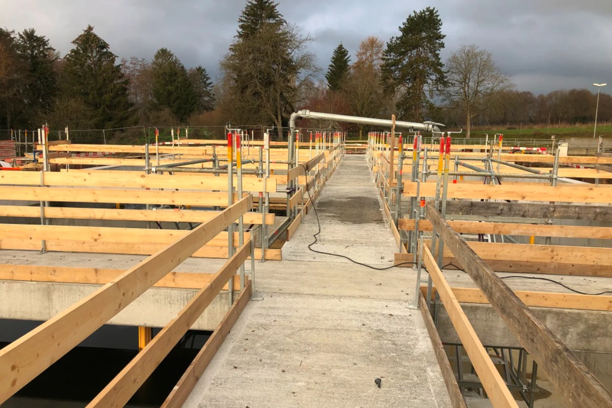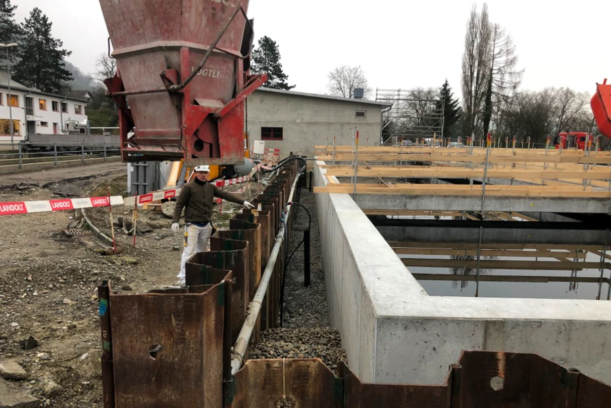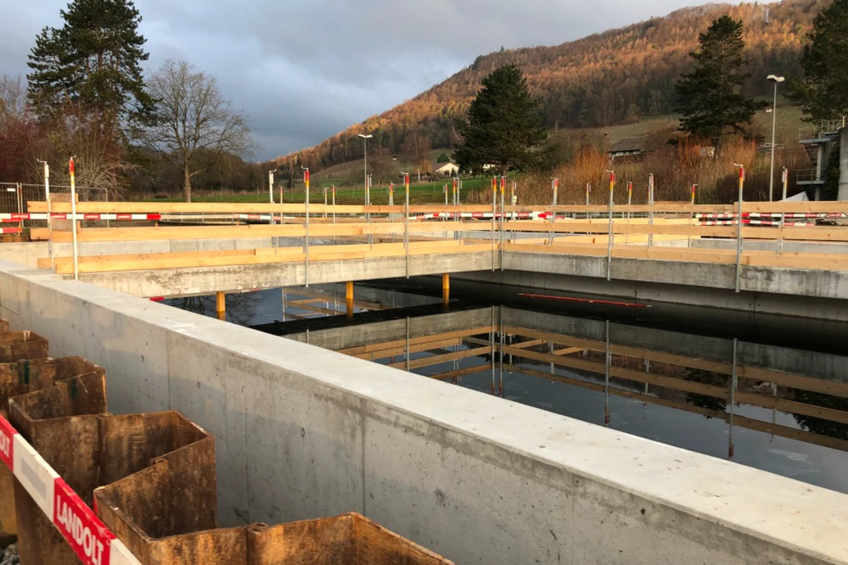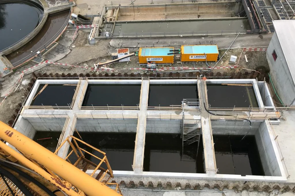 Neubau Biologieblock mit Belüftungsbecken und Nachklärbecken.