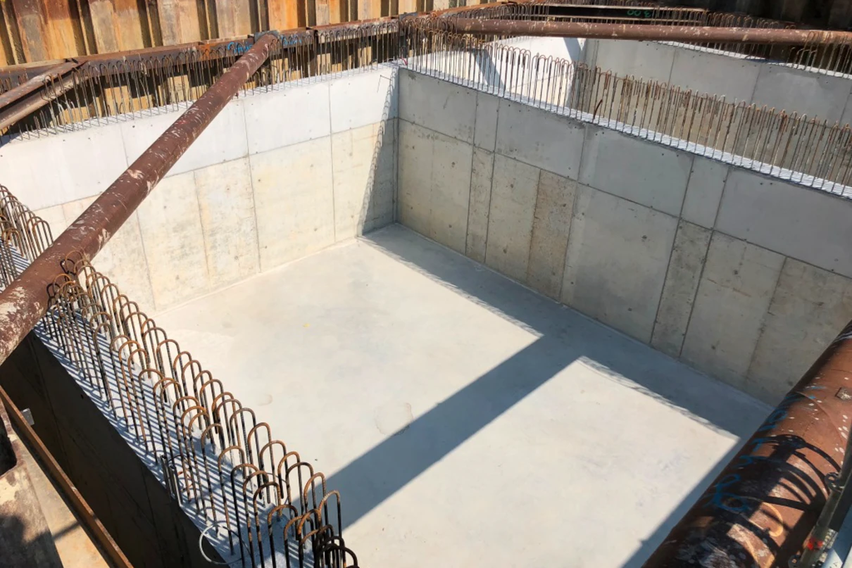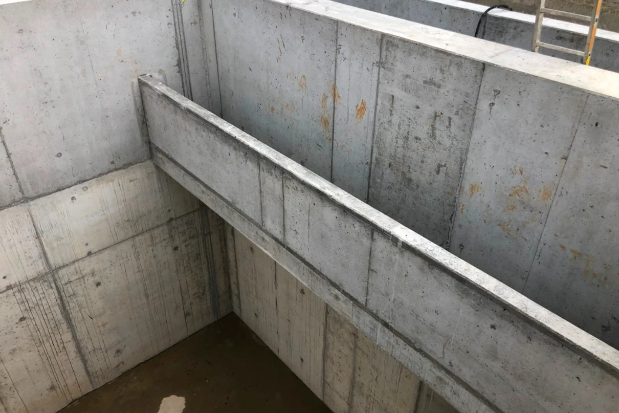 Abdichtungskonzept: System "Weisse Wanne" mit Sika Injetoflex (Arbeitsfugen).
