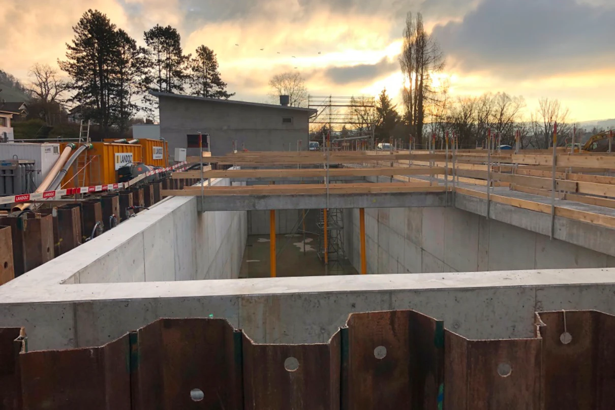 Aushubarbeiten / Baugrubensicherung / Stahlbetonarbeiten ARGE Landolt + Co. AG / Heinz Kern AG;