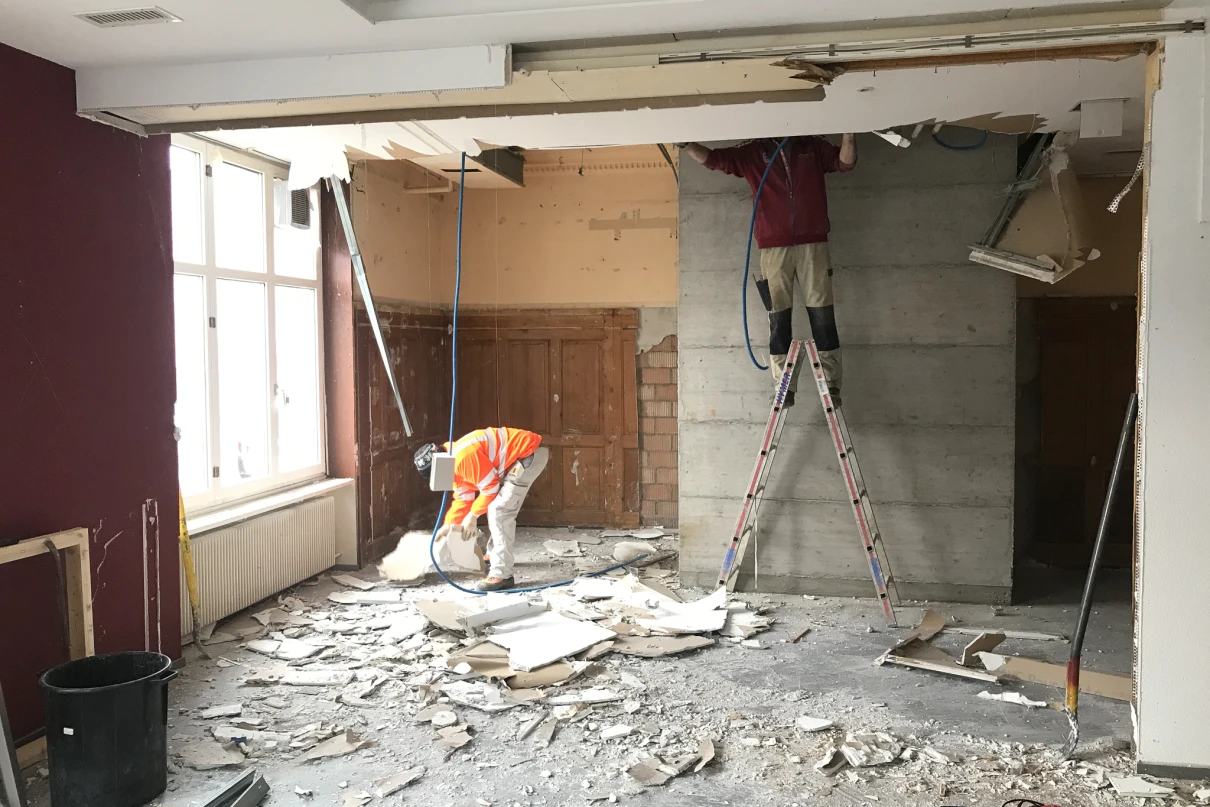 Umbau Mehrfamilienhaus in neue Wohnungen und Büro sowie ein Restaurant. Kernsanierung