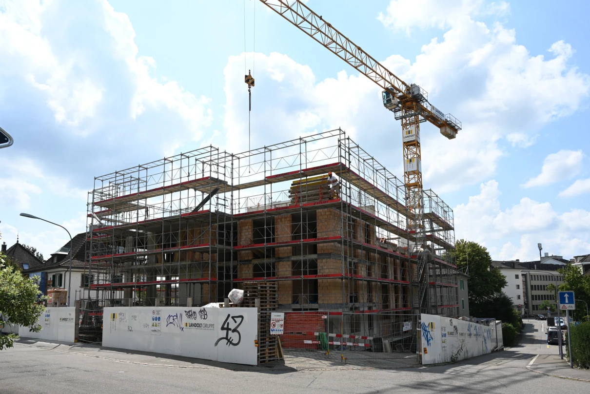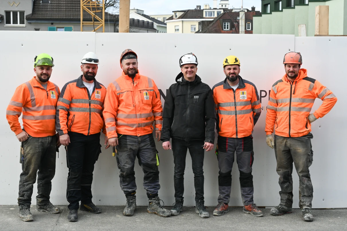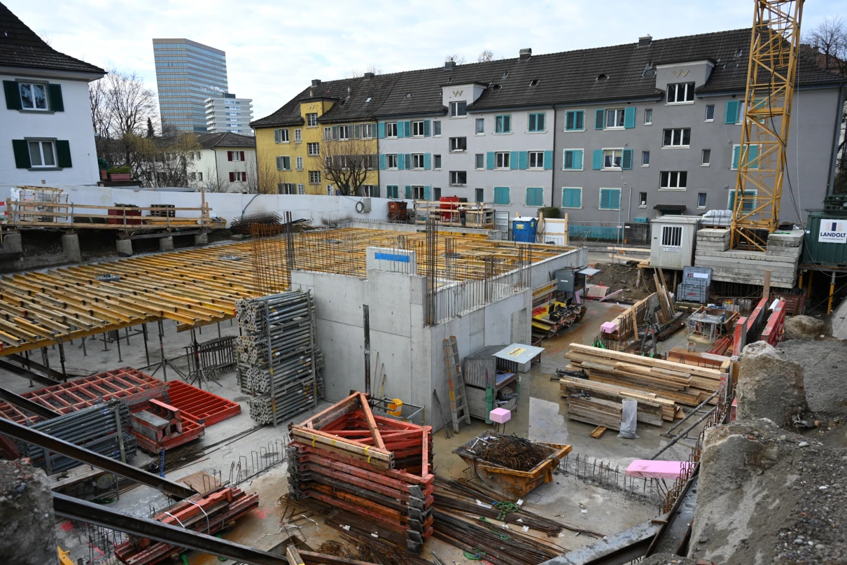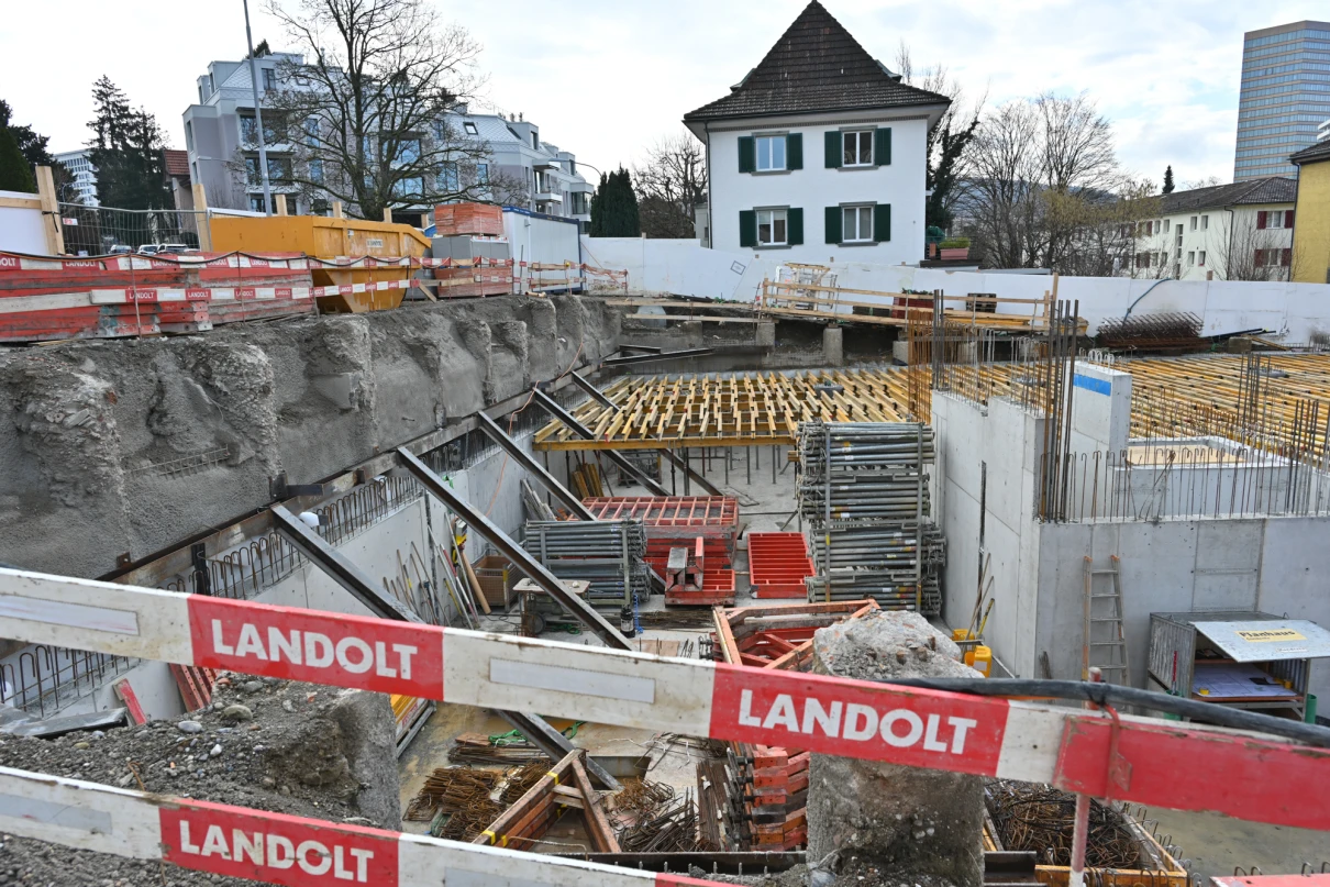 Der Rückbau startete im September 2024 unter der Leitung von Marco Basile. Nach dem fachgerechten Abbruch durch Joel Hälg folgten Aushub und Baugrubensicherung durch die Firma Wellauer. Anfang 2025 begannen die Arbeiten am Untergeschoss mit dem Einsatz von Faserbeton zur Reduktion konventioneller Armierung.