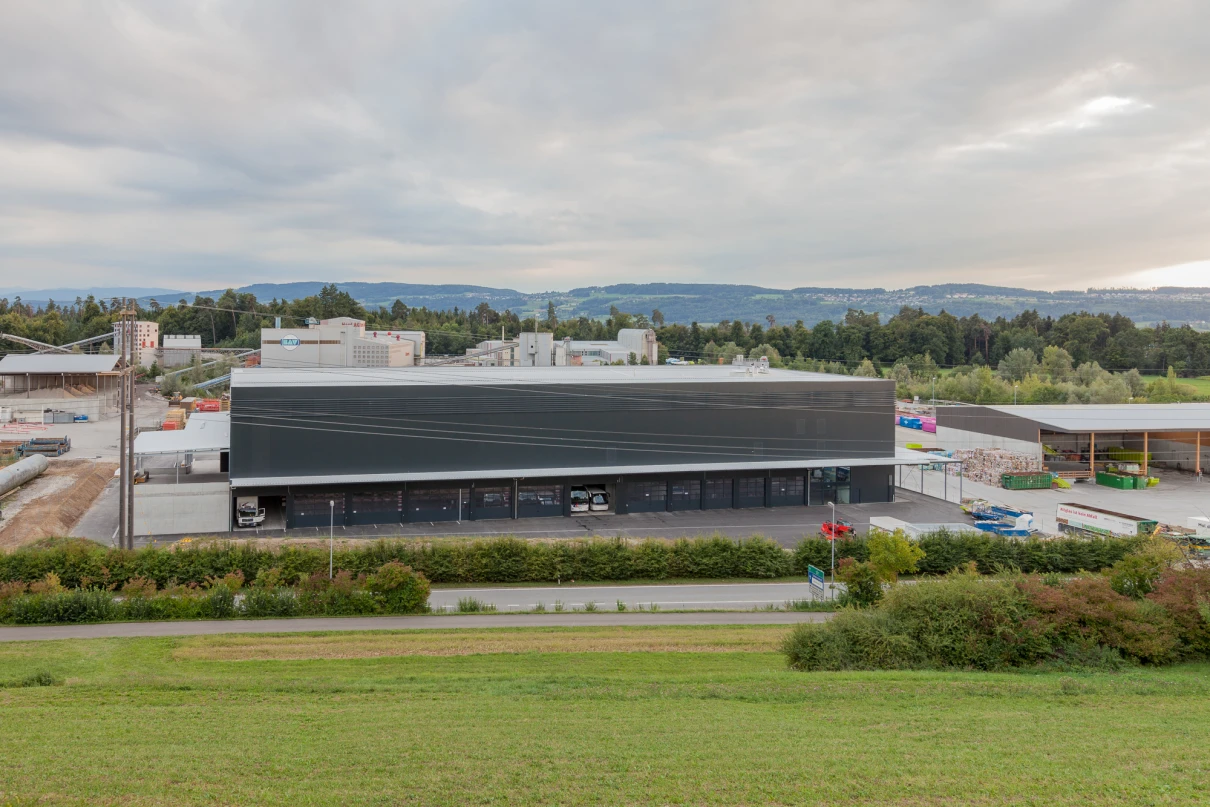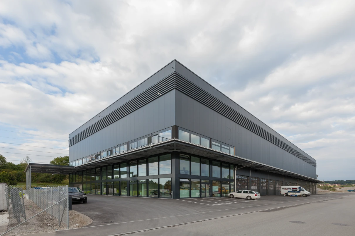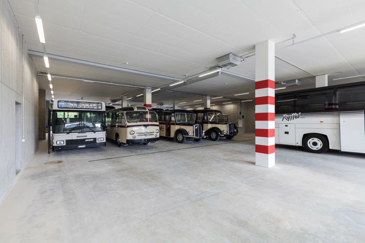 Neubau eines Betriebsgebäudes für die Firma Ryffel AG. Grundriss 100 x 41m, Bürogebäude fünfgeschossig, Lager, Werkstätten und Bus-Cardepot viergeschossig. Im obersten Stockwerk befindet sich die Autoeinstellhalle die durch innenliegende Rampen erschlossen wird.