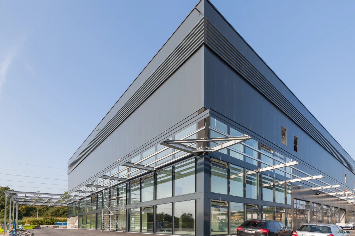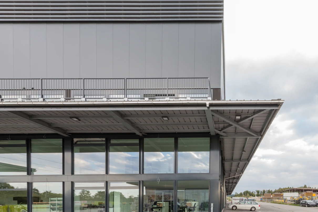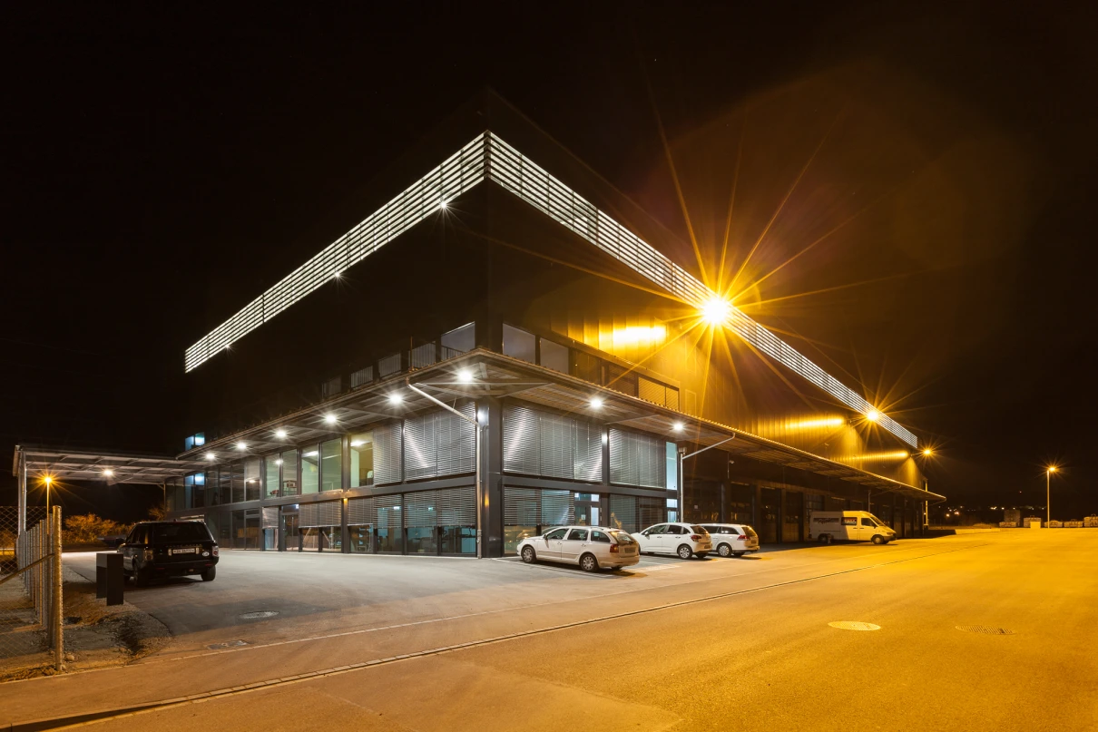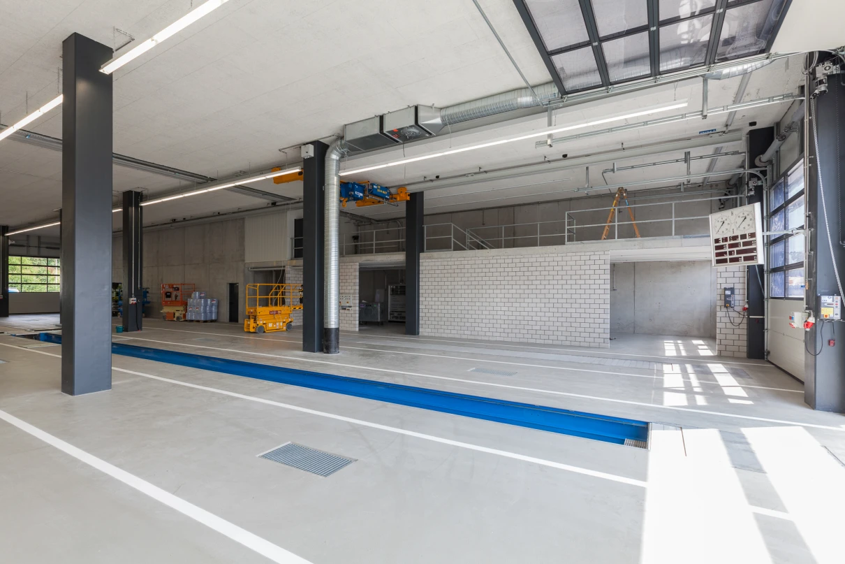 Neubau eines Betriebsgebäudes für die Firma Ryffel AG. Grundriss 100 x 41m, Bürogebäude fünfgeschossig, Lager, Werkstätten und Bus-Cardepot viergeschossig. Im obersten Stockwerk befindet sich die Autoeinstellhalle die durch innenliegende Rampen erschlossen wird.
