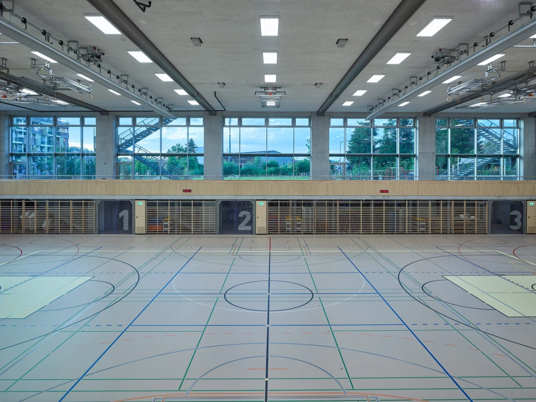 Im Stadtkreis Oberwinterhur durften wir ein Primarschulhaus inklusive Dreifachsporthalle bauen.